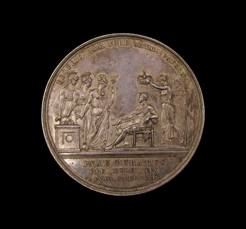 Obverse with bust of George IV, reverse showing the King enthroned, being crowned by Victory. The official coronation issue.