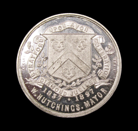 Obverse with crowned and veiled bust of Victoria, reverse with coat of arms of Stratford-upon-Avon.