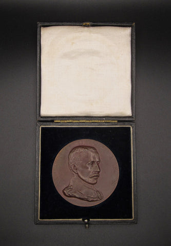 Obverse with bust of Captain Haynes, reverse with view of field fortifications. Edge engraved 'No 534824 Sapper J. Tyreman 345 Party'.