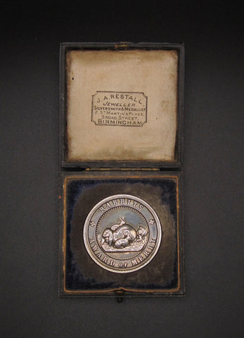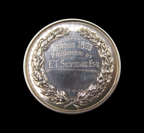 Obverse with scene of rabbits, reverse engraved within wreath 'Stroud 1899 - presented by - E.T. Sergeant, Esq'. Hallmarked below.