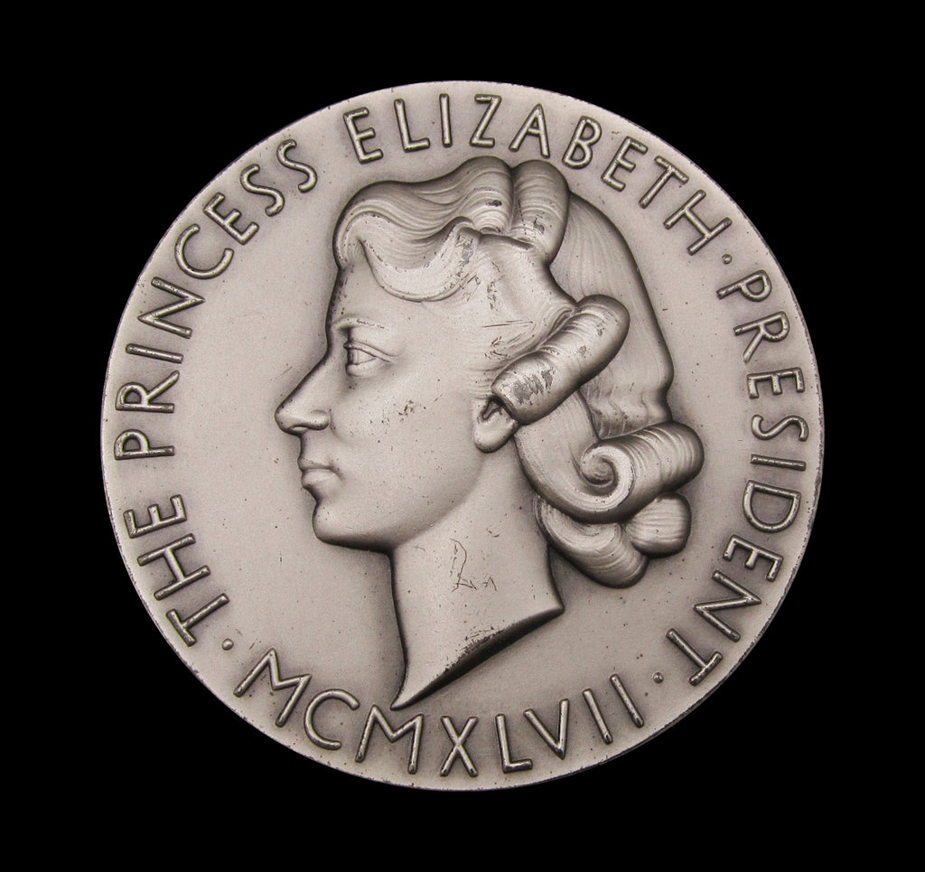 Obverse with wonderful early portrait of Princess Elizabeth, reverse with facade of the Society's building. Edge engraved 'Heather Jean Craig, Advanced Examinations, 1953. Typewriting.'