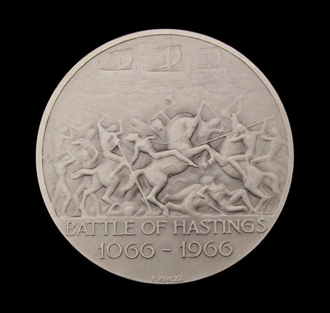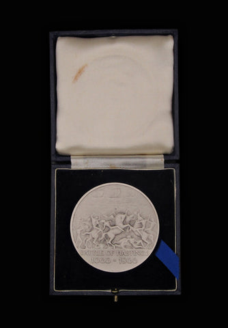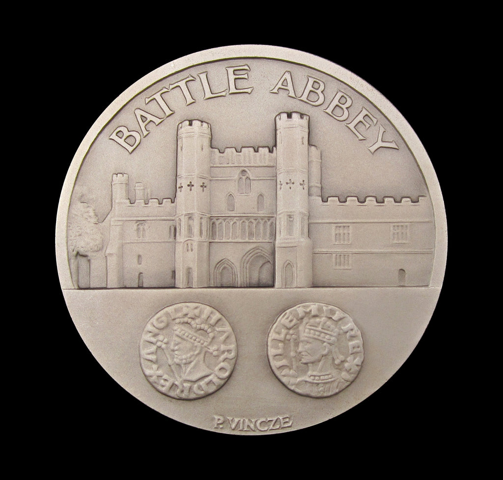 Obverse with view of Battle Abbey, reverse with battle scene, ships in background. Edge stamped 'Fine Silver' and numbered 207.