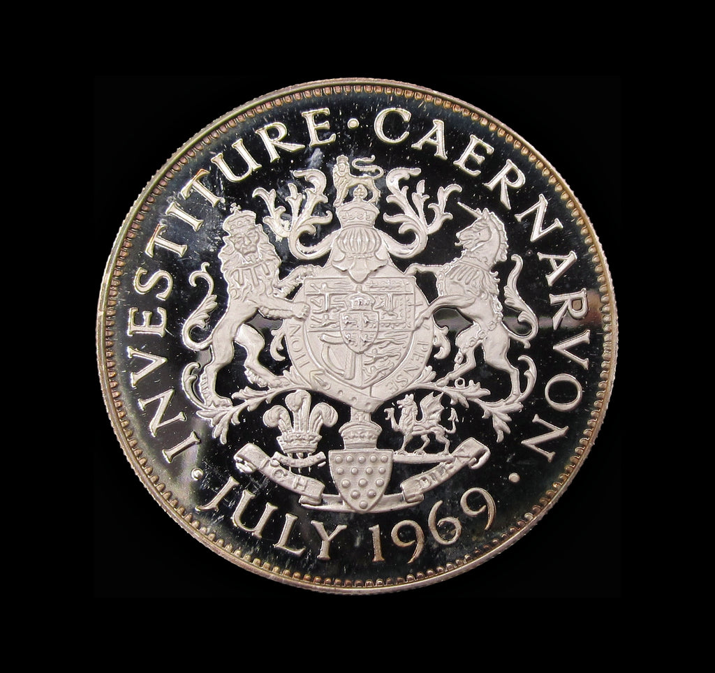 Obverse with portrait of young Prince of Wales, reverse with coat of arms.