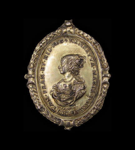 Cast and chased. A few areas of worn gilding and the integral suspension loop broken, otherwise Very Fine and rare.