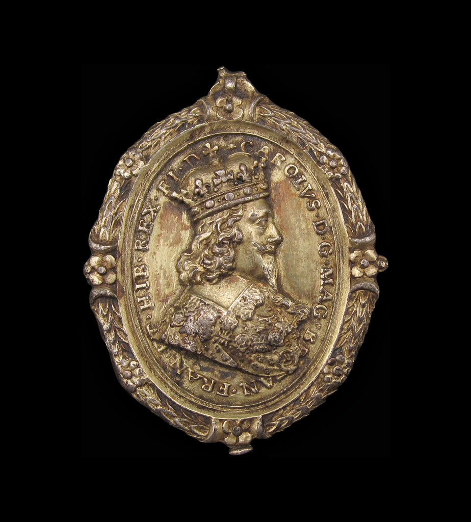 Obverse with crowned bust of Charles I, reverse with bust of Henrietta Maria, legend around, wreath border.