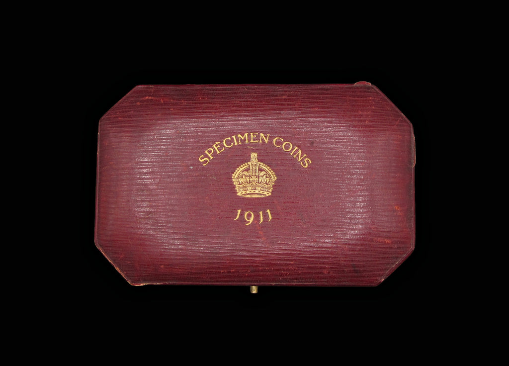 Original Royal Mint hard case for the 1911 8 coin proof set from Halfcrown to Maundy Penny.