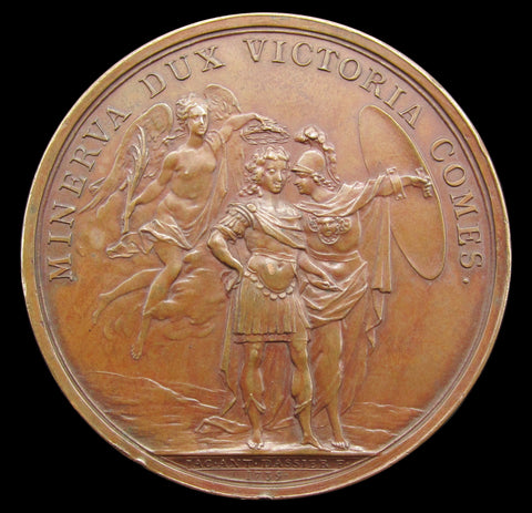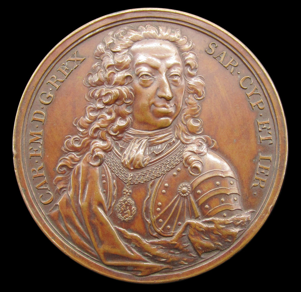 Obverse with bust of Charles Emmanuel III, reverse showing the King accompanied by Minerva and crowned by winged Victory.