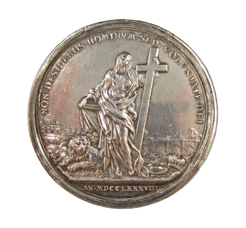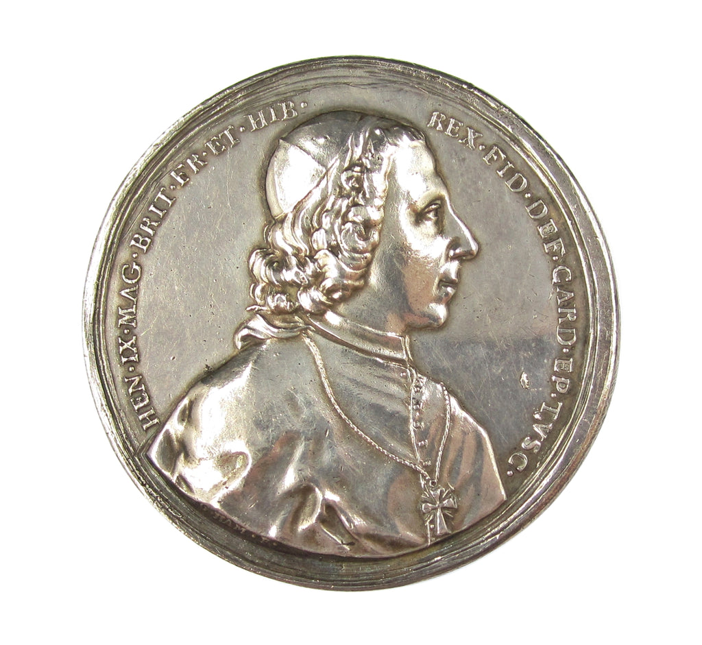 Obverse with bust of Prince in clerical cap, reverse showing Religion standing holding cross and bible, view of St Peter's, Rome, in background.
