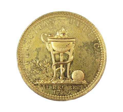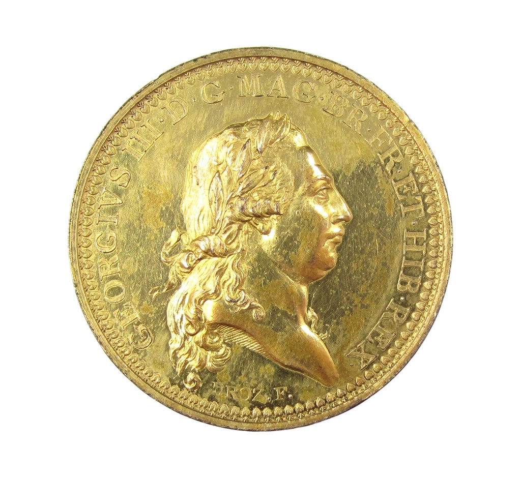 Obverse with laureate bust of George III, reverse with snake entwined around a tripod on which rests a burning altar.
