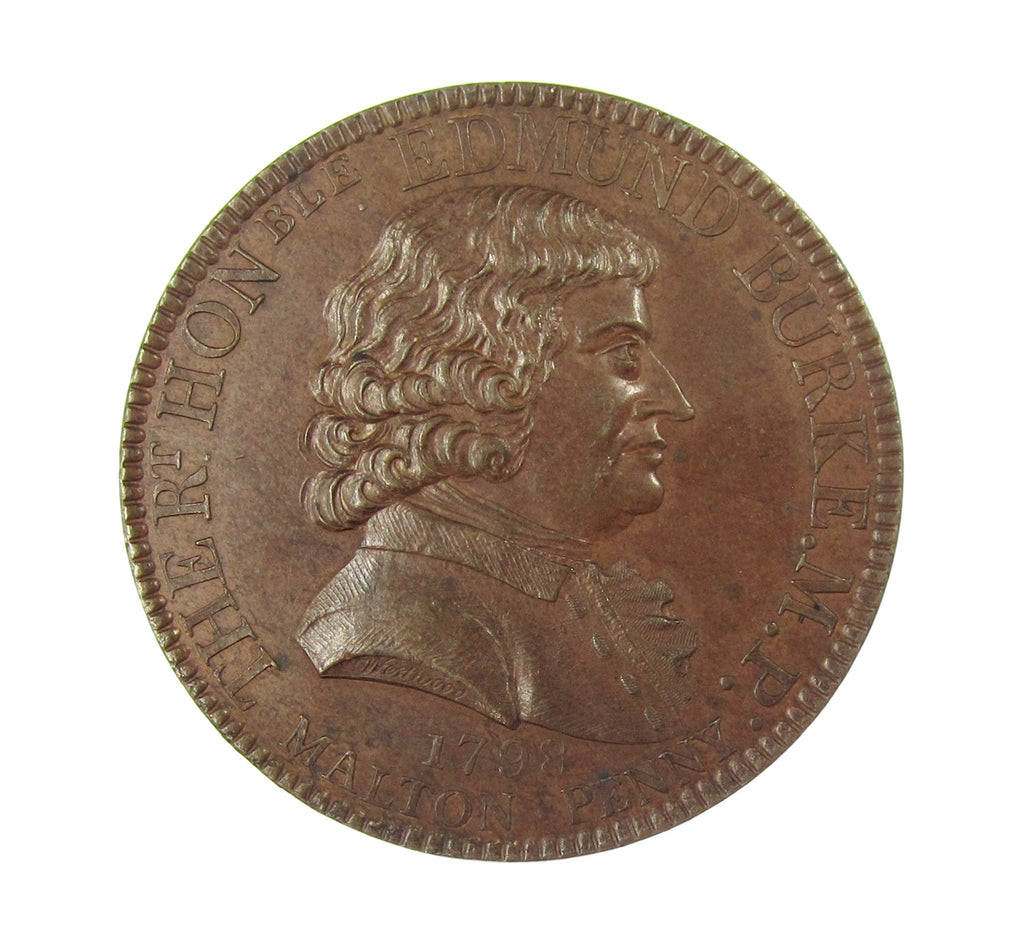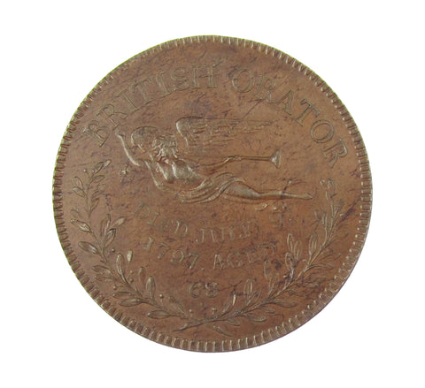 Obverse with bust of Edmund Burke, reverse with Fame blowing trumpet below 'BRITISH ORATOR'.