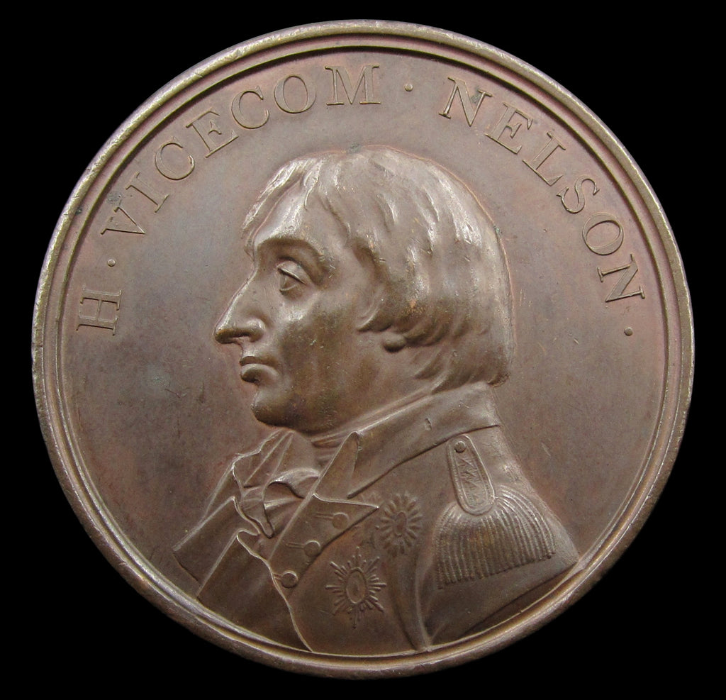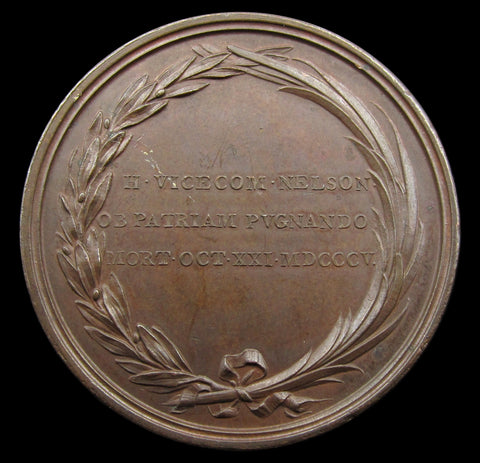Obverse with bust of Nelson, reverse with 3 line inscription within wreath.