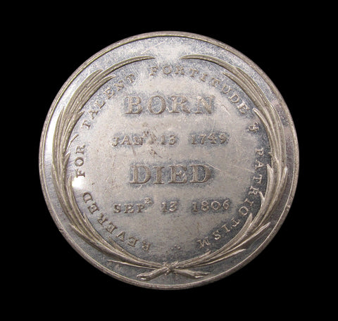Obverse with bare head bust of Charles Fox, reverse with legend within wreath.