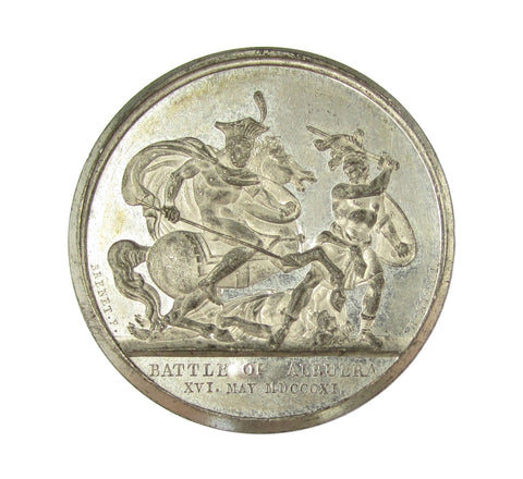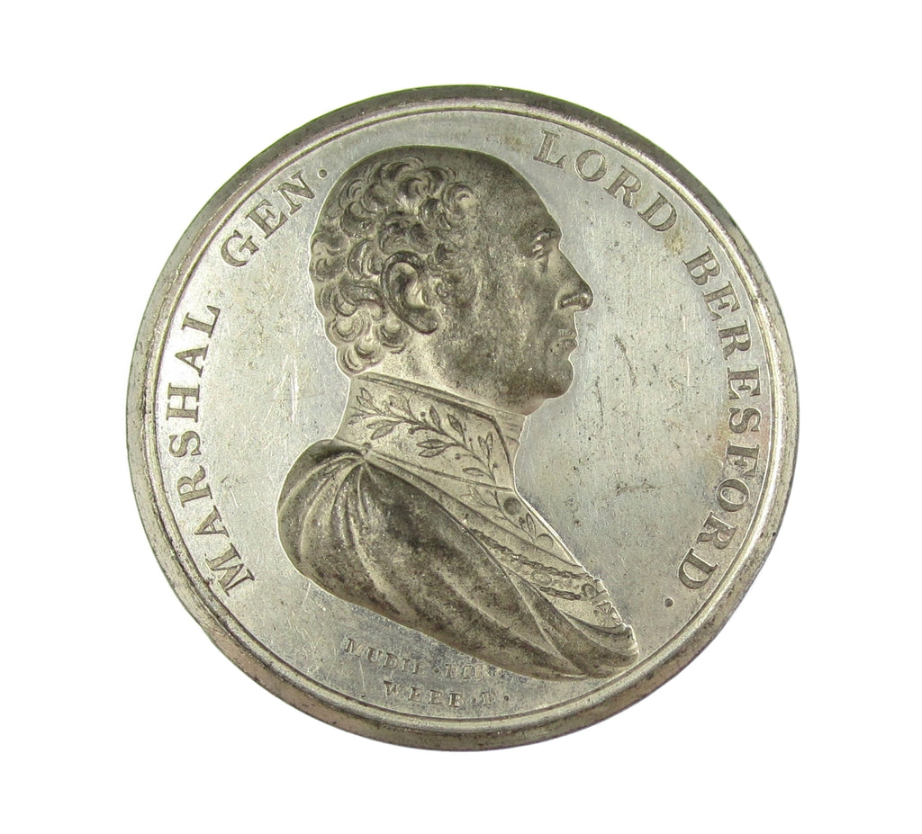 Obverse with uniformed bust of Lord Beresford, reverse with a Polish lancer attacking a British infantryman.