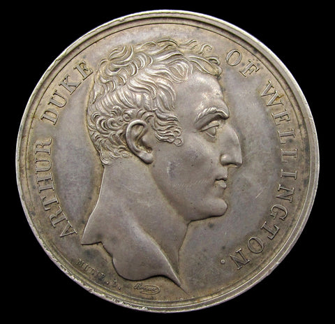 Reverse showing British lion subduing the French eagle, obverse showing bust of Wellington.