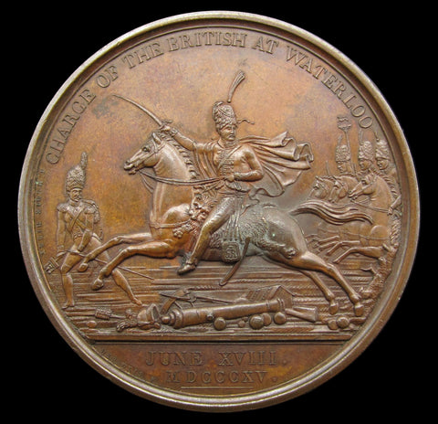 Obverse with bust of Henry William Marquis of Anglesey, reverse showing the cavalry charge of the British at Waterloo.