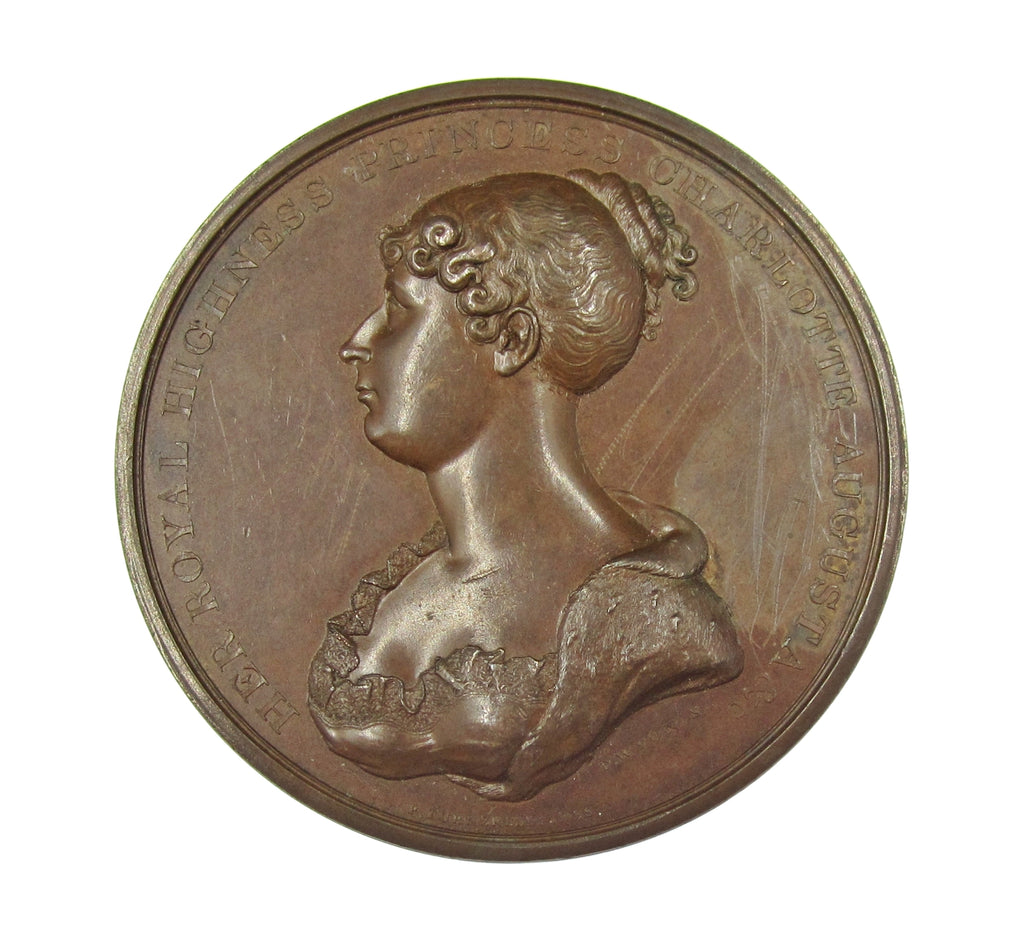Obverse with draped bust of Princess Charlotte, reverse with 9 line inscription within 2 concentric circles of inscription.