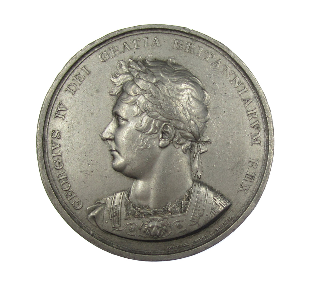 Uniface obverse medal featuring the same effigy of George IV as seen on the Accession and Coronation medals by Rundell and co. Struck in heavy white metal at a weight of 153.8g.
