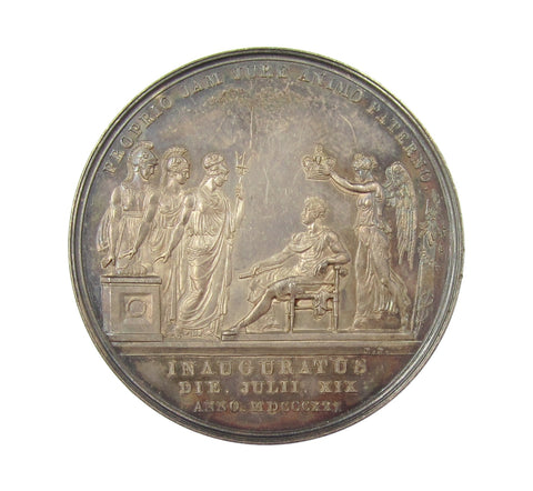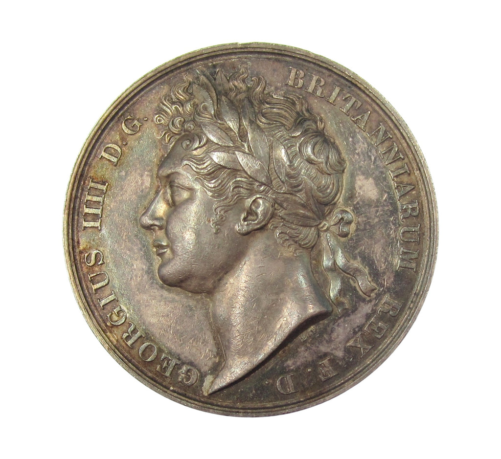 Obverse with bust of George IV, reverse showing the King enthroned, being crowned by Victory. The official coronation issue.