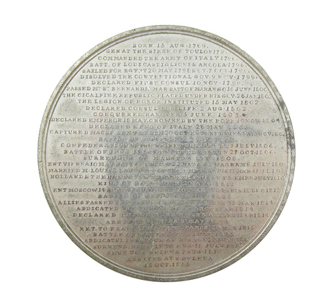 Obverse with bare head of Napoleon within wreath, reverse with biographical details in 36 lines.