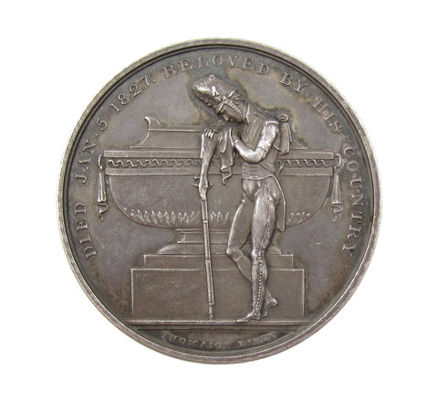 Obverse with bare head of Duke of York, reverse with soldier mourning beside the tomb.