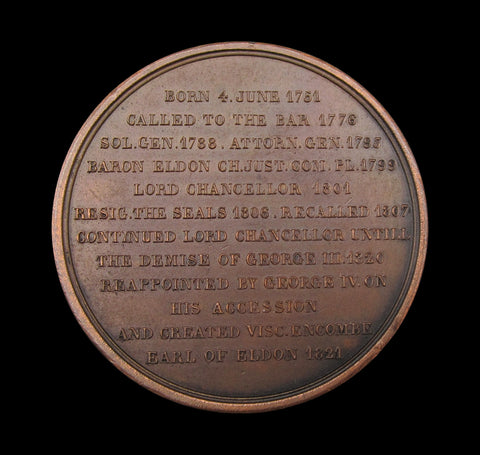 Obverse with robed bust of Earl of Eldon, reverse with 12 line inscription.