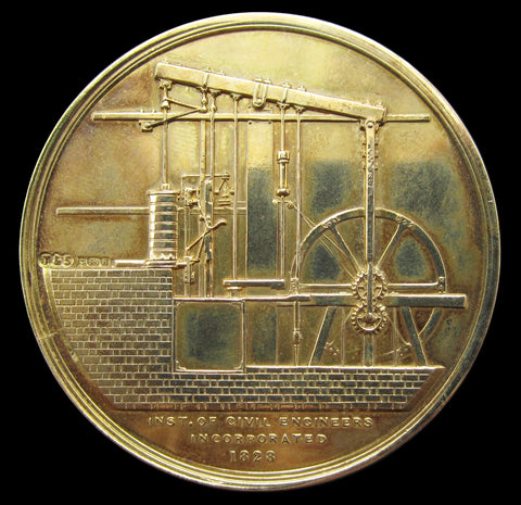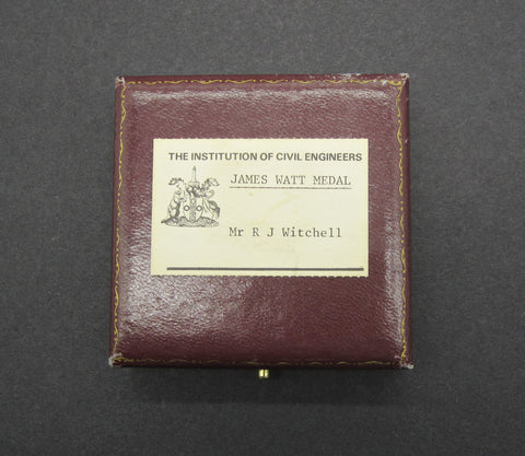 Obverse with bust of James Watt, reverse showing view of a steam engine. Edge inscribed 'R.J Witchell. MA. CEng. FICE'. Hallmarked for 1982.