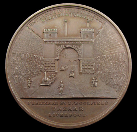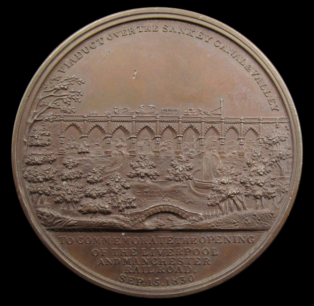 Obverse with train crossing viaduct in an open landscape with canal below, reverse showing twin tunnel entrances.