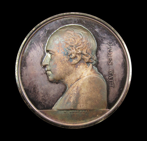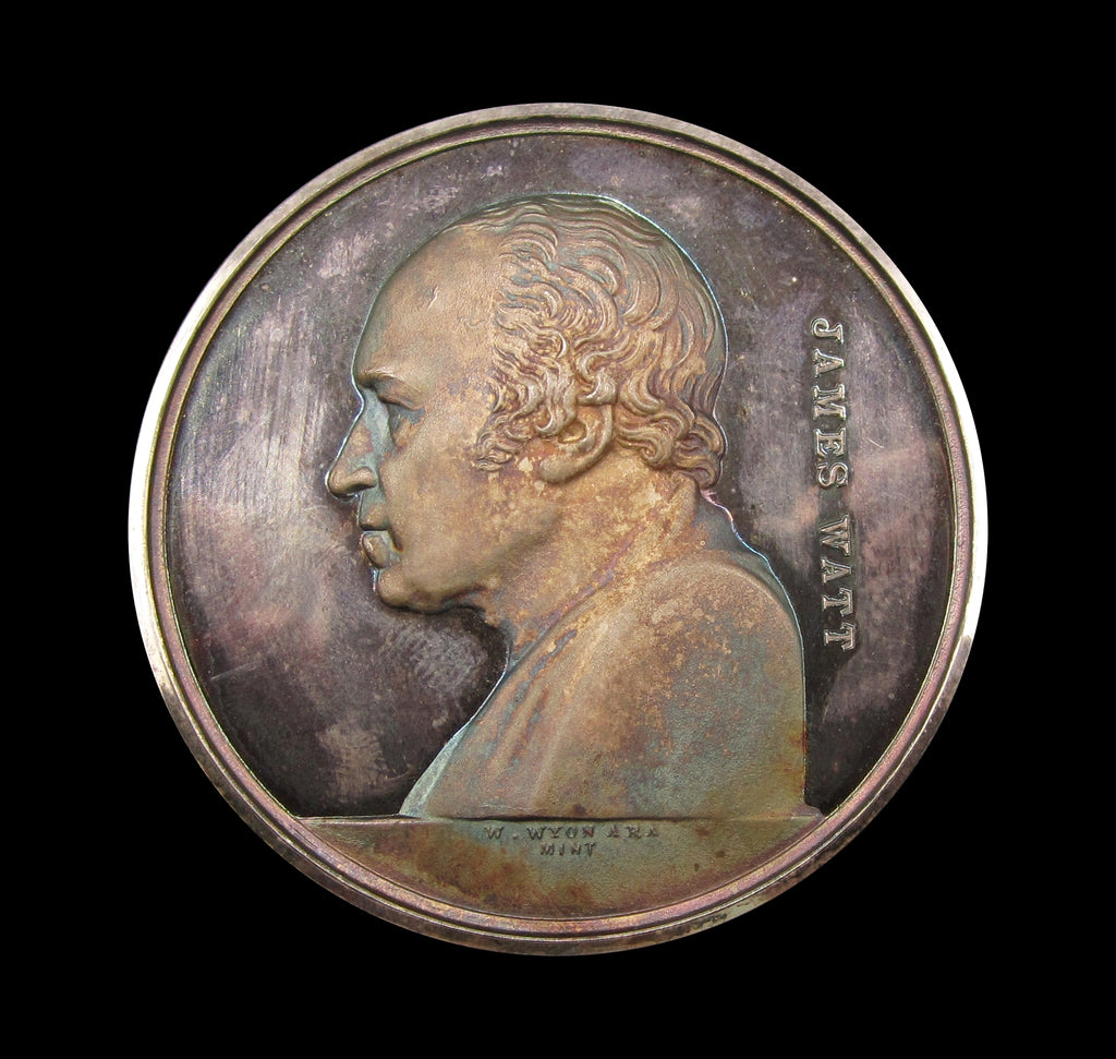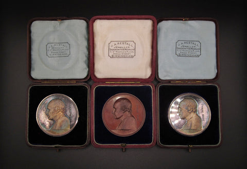 Obverse showing bust of James Watt, two different reverses for both first and second class prizes. All awarded to F.E.D Cooper for carving, 1893, 1894 & 1896.