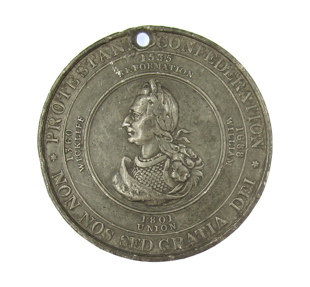 Obverse with laureate and draped bust of William III with surrounding legend, reverse with the imperial crown above a triangle that has an open bible in the centre.