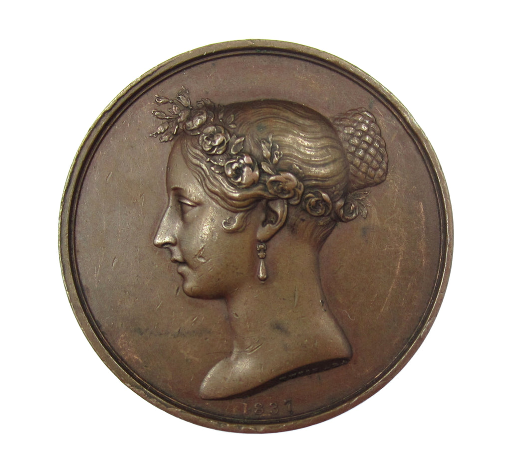 Obverse with young head portrait of the Princess, reverse with 6 line inscription within wreath.