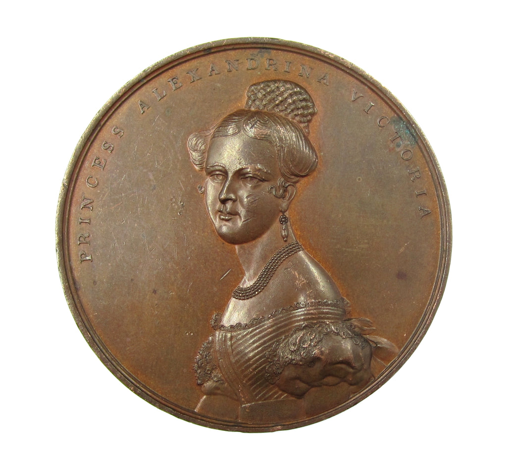 Obverse with young head portrait of Victoria, reverse with 7 line inscription within wreath.