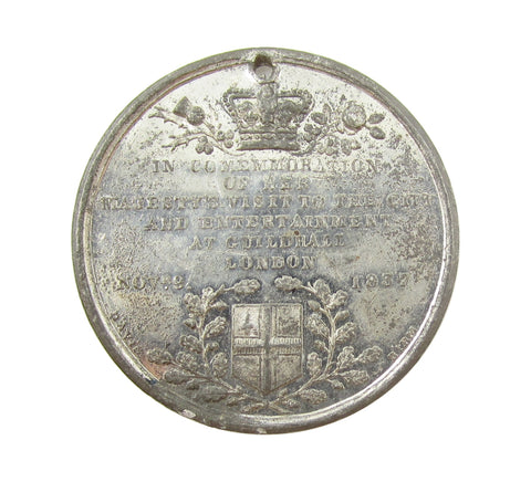 Obverse with young head of Victoria, reverse with inscription above the arms of the City of London.