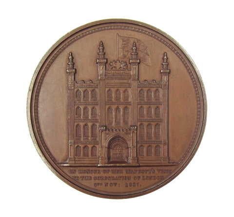Young bust of Victoria, reverse with view of the Guildhall.
