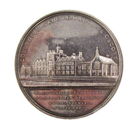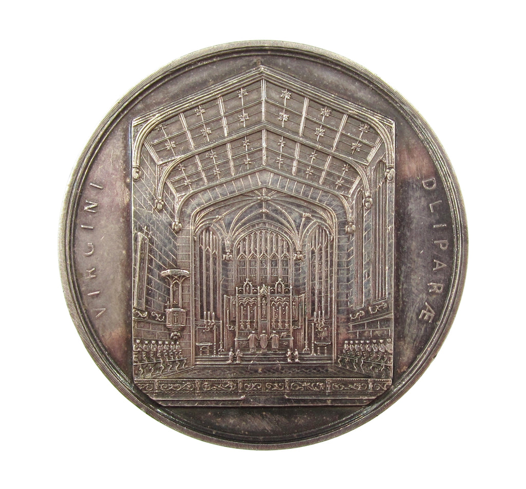 Obverse with exterior view of the college buildings, reverse with interior view of the chapel.