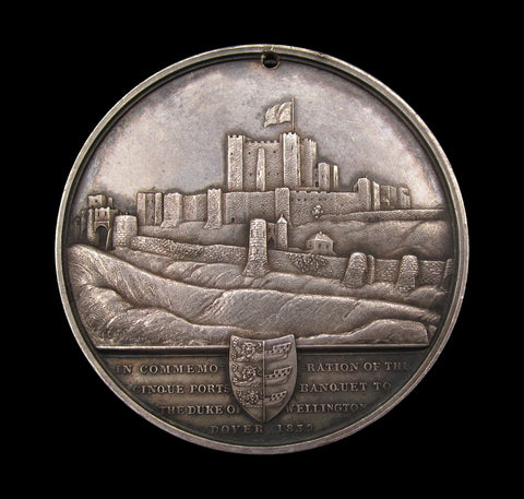 Obverse with bust of the Duke of Wellington, reverse with view of Dover castle.