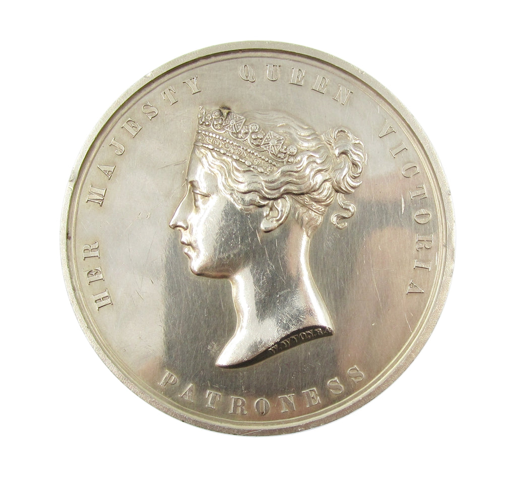 Obverse with young portrait of Queen Victoria, reverse with the society's motto within wreath. Edge reads 'G. Murray. For Collection Of Models For A Cheese Factory. 1870'.