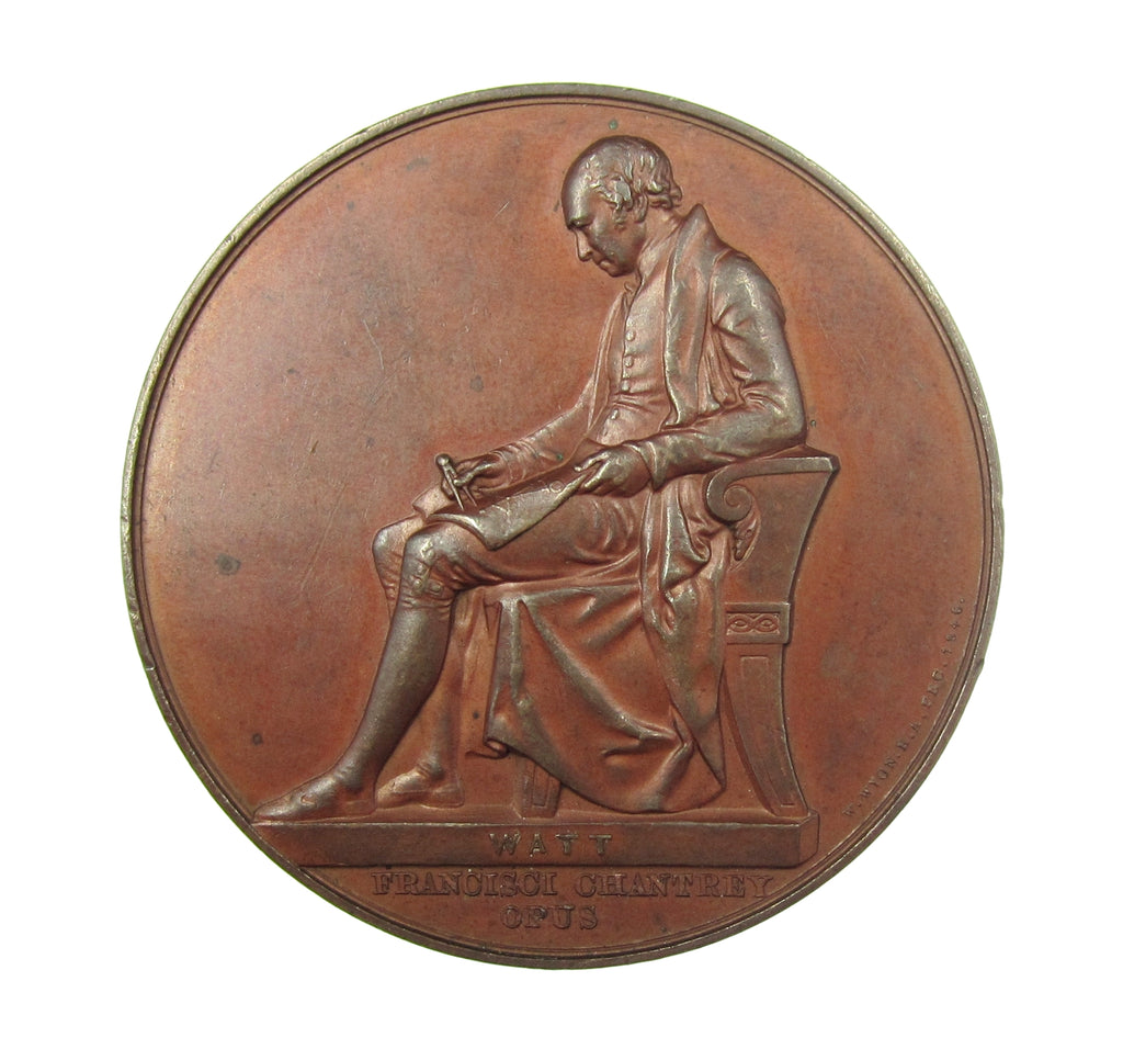 Obverse with bust of Chantrey, reverse with Chantrey's monument of Watt. Edge plain.