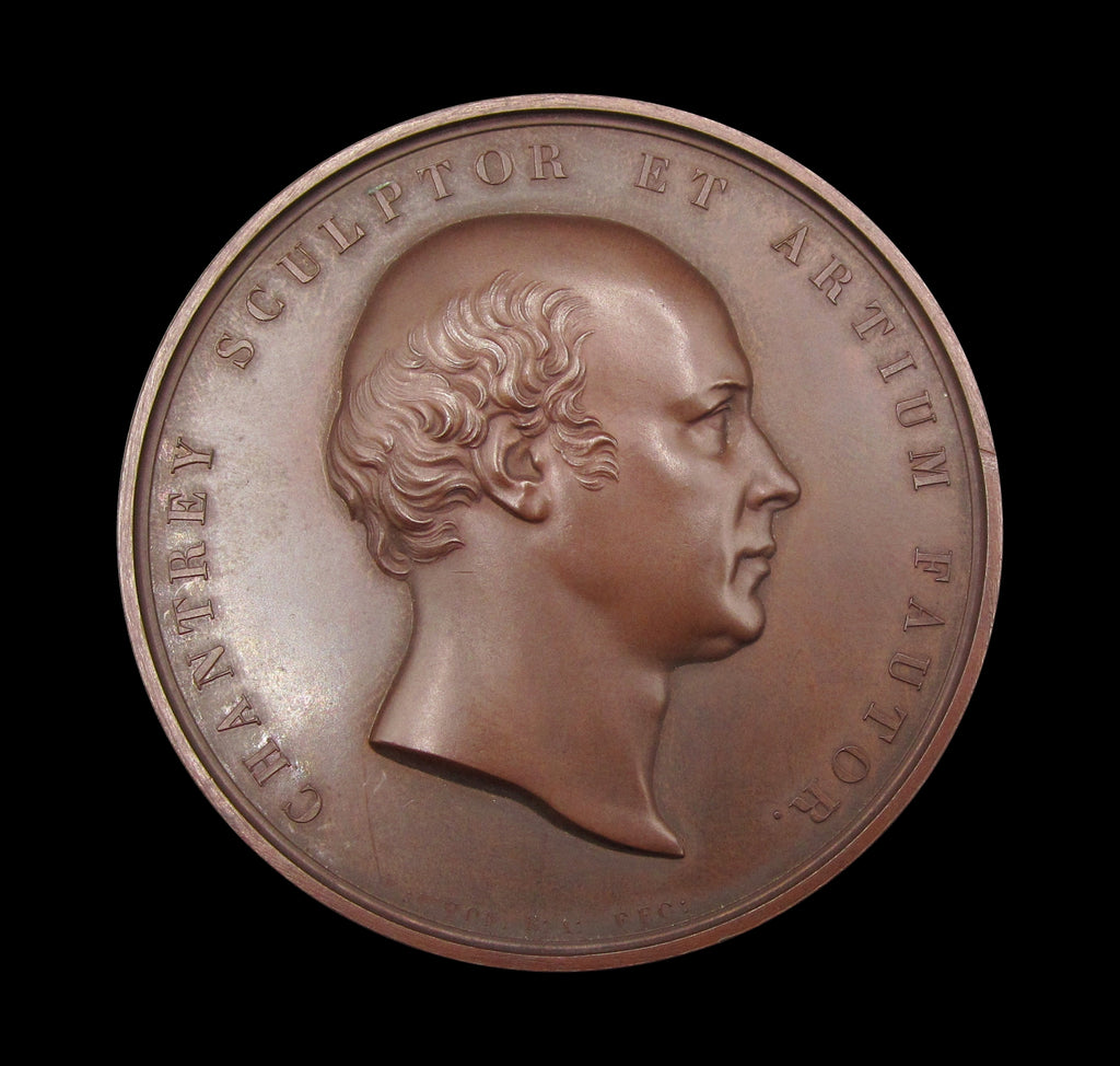Obverse with bust of Chantrey, reverse with Chantrey's monument of Watt. Edge engraved 'Art-Union of London 1843'.