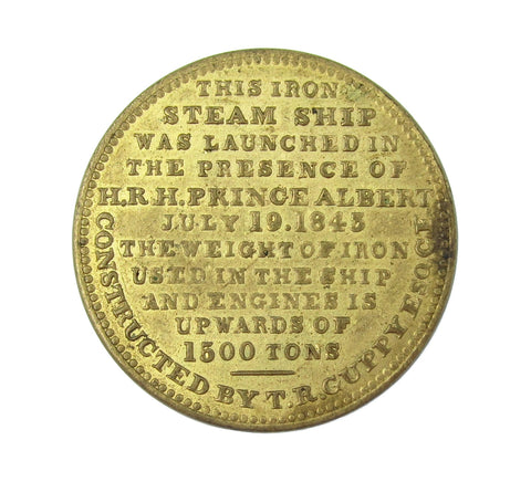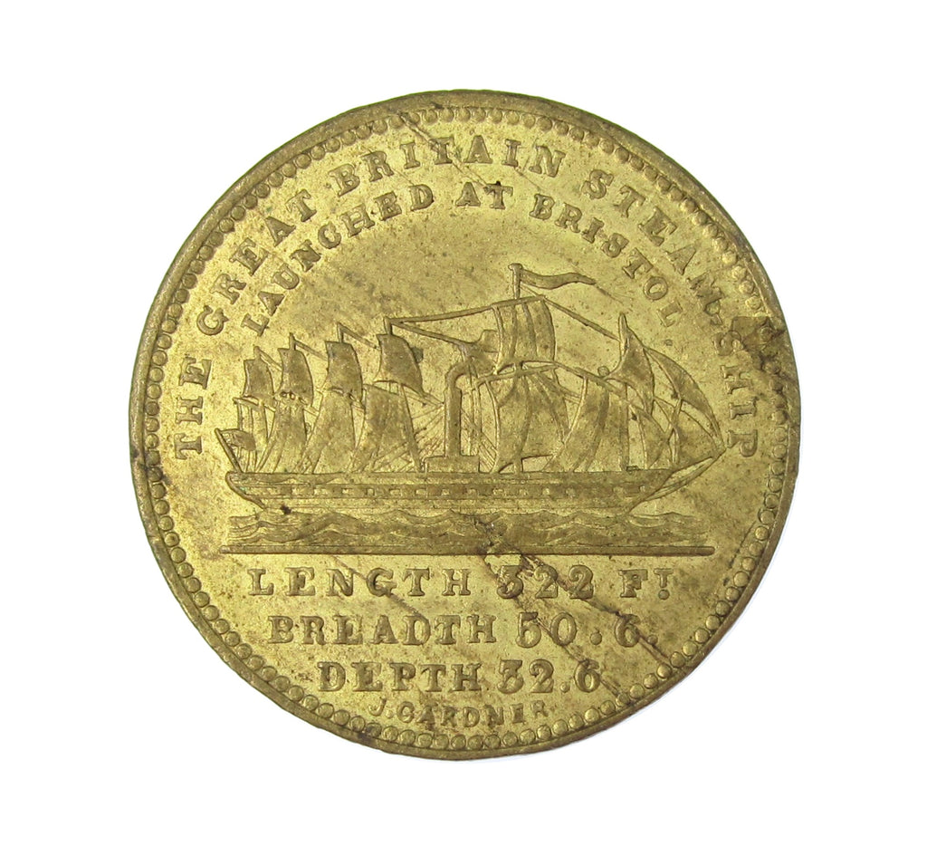 Obverse with startboard view of the S.S Great Britain, reverse with 12 line inscription.