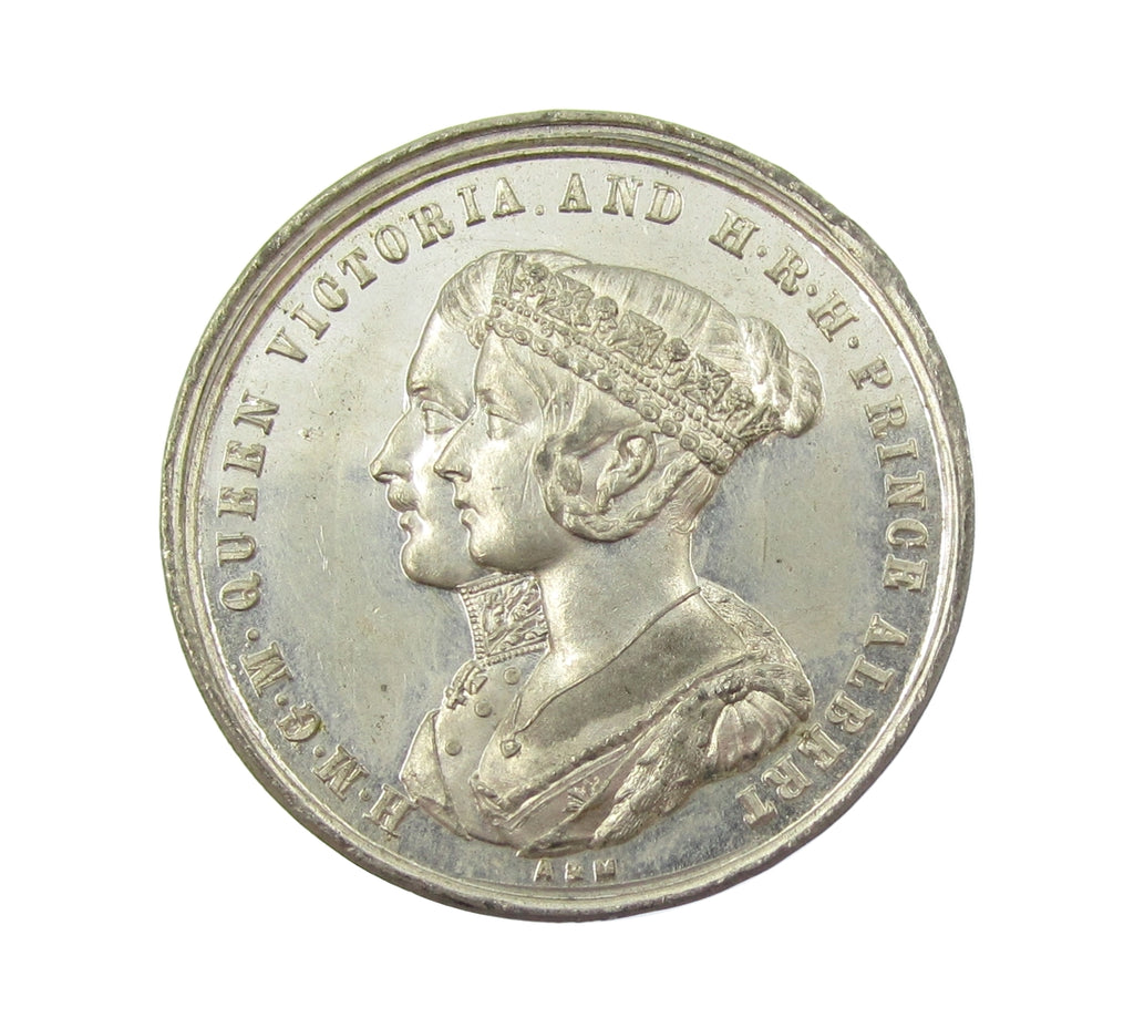 Obverse with conjoined busts of Victoria & Albert, reverse with view of the river Thames and the Houses of Parliament.