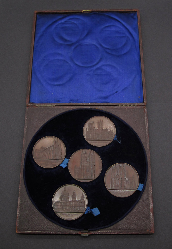 Showing the facade of Lincoln Cathedral, St Paul's, Westminster Abbey, Winchester and York, from Wiener's series of European cathedrals and churches, struck c.1855-1865.