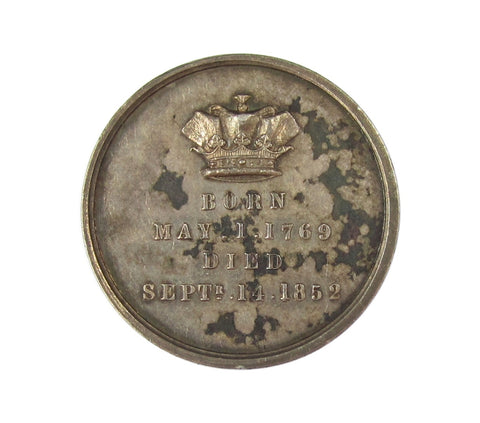 Obverse with uniformed bust of The Duke of Wellington within oval, reverse with legend beneath crown.