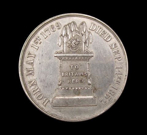 Obverse with bust of Arthur Duke of Wellington, reverse with willow branches atop a plinth.
