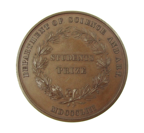 Obverse with young head bust of Victoria, reverse with 'Students Prize' within wreath. Edge reads 'Agnes Gaskell, Warrington. Stage 22c, May 1855'. Far scarcer than the later science and art award medals.