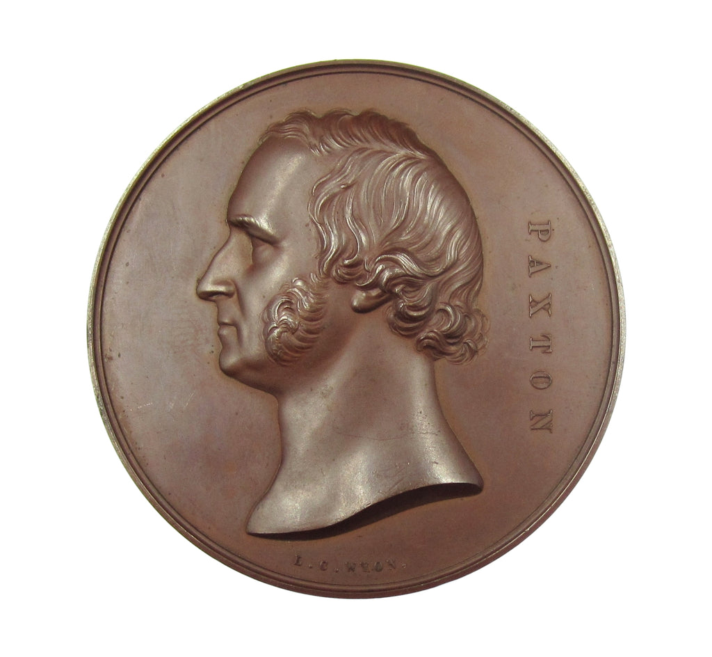 Obverse with bust of Sir Joseph Paxton, reverse with view of exhibition building.