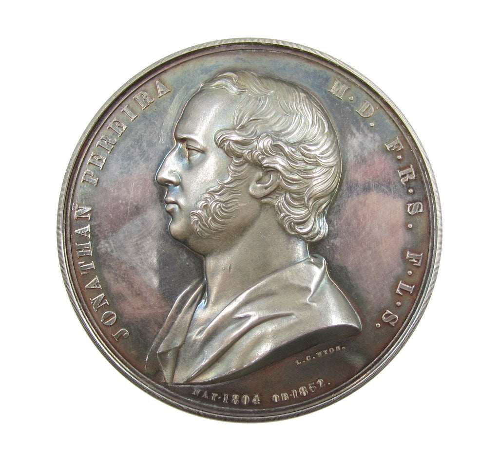 Obverse with bust of Jonathan Periera, one of the first professors of the school, reverse with 7 line inscription within wreath. Edge named to 'Sydney Smith, 1909'.