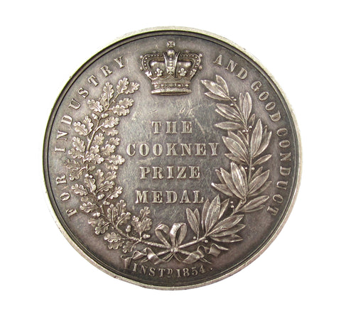 Obverse with view of the Royal Naval School, New Cross, reverse with Cookney Prize Medal within wreath, legend around.