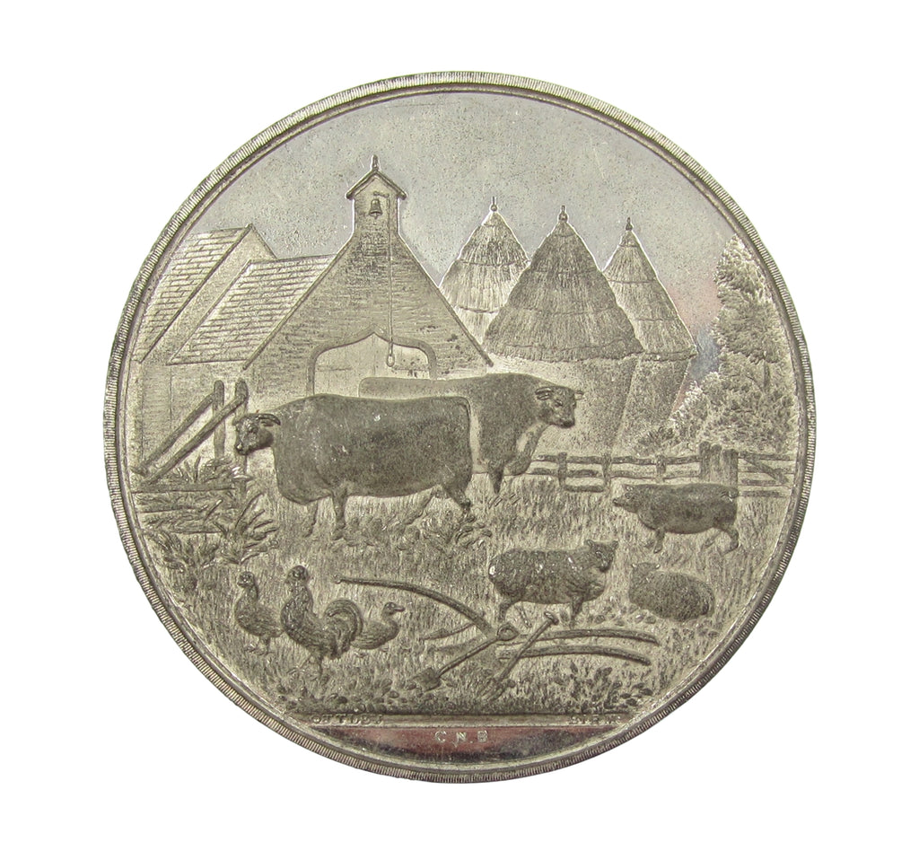 Obverse with farmyard scene, reverse engraved within wreath with 'Yearling Heifer, 2nd Prize, James Anderson Esq, 1857.