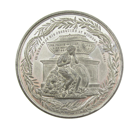 Obverse with bare head of Prince Albert, reverse with Britannia seated upon lion, next to sarcophagus.