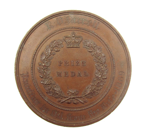 Obverse with diademed bust of Victoria, reverse with 'PRIZE MEDAL' within wreath and named to 'R. O'Farrell, Painting In Oil From The Life, 1869'.